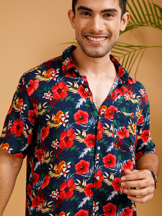 Tropical ECOVERO Navy Print Shirt