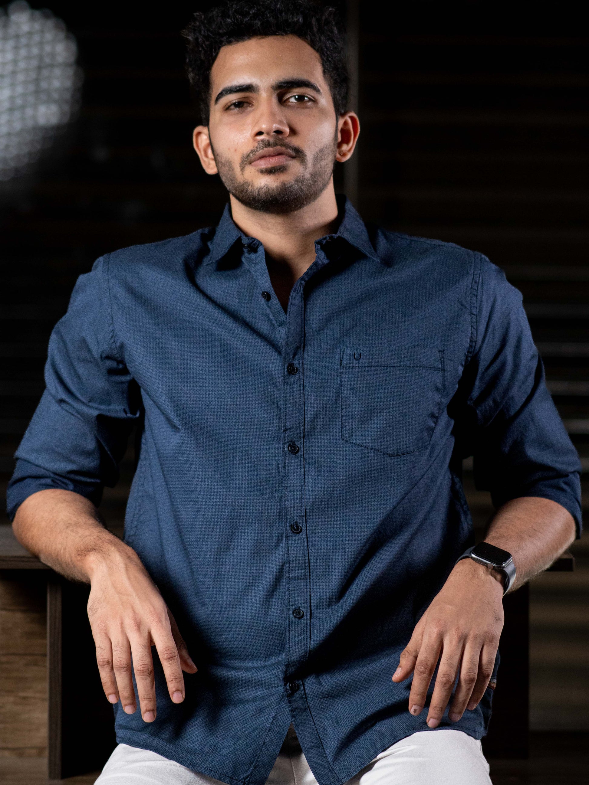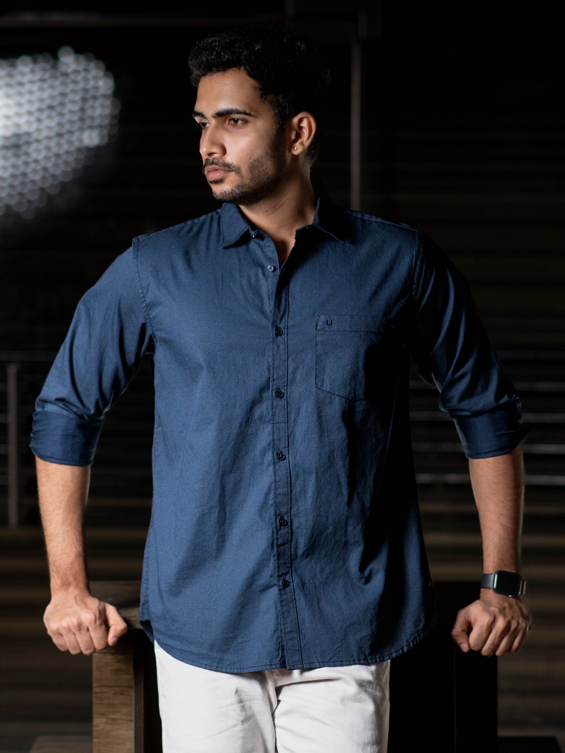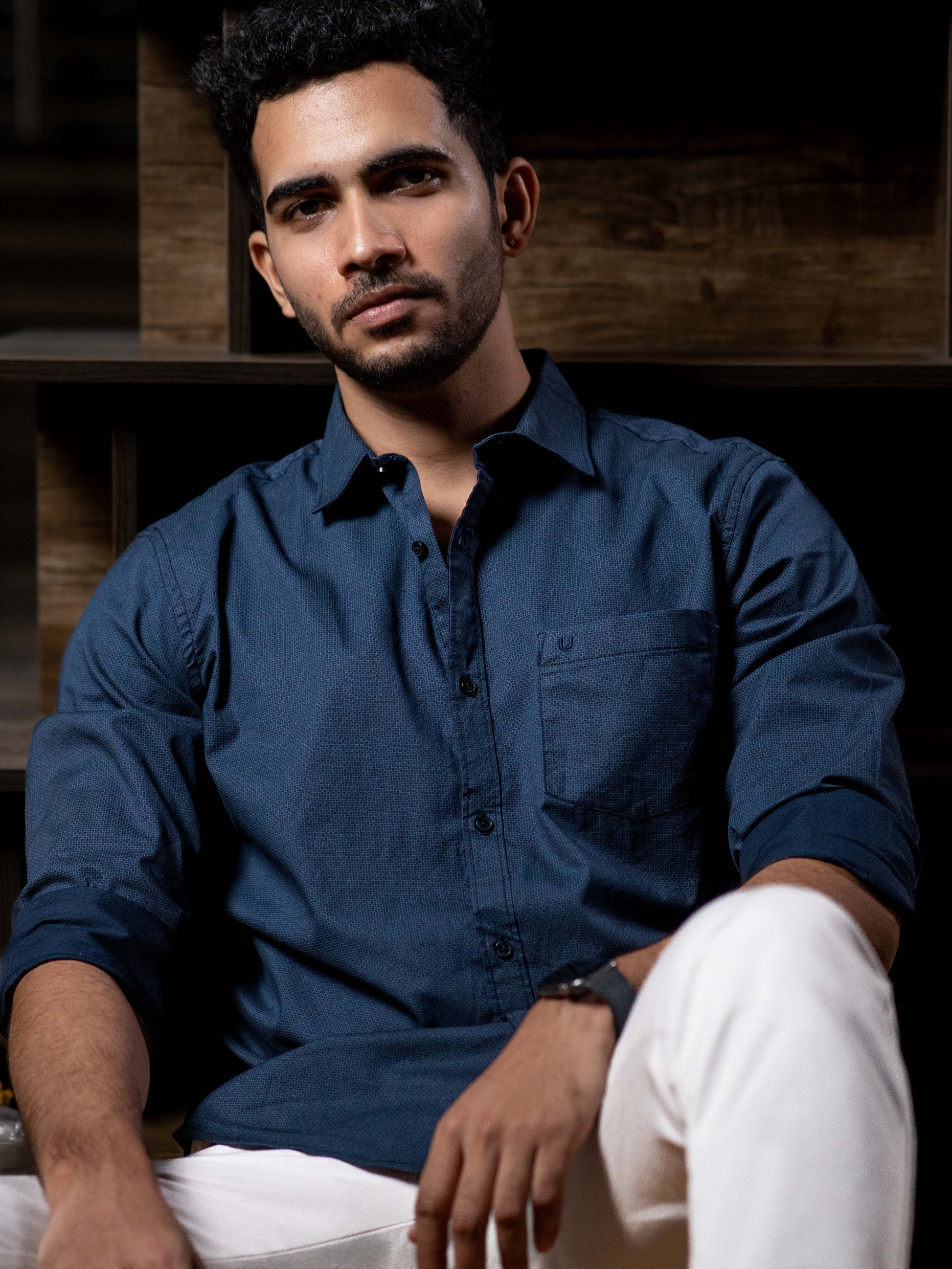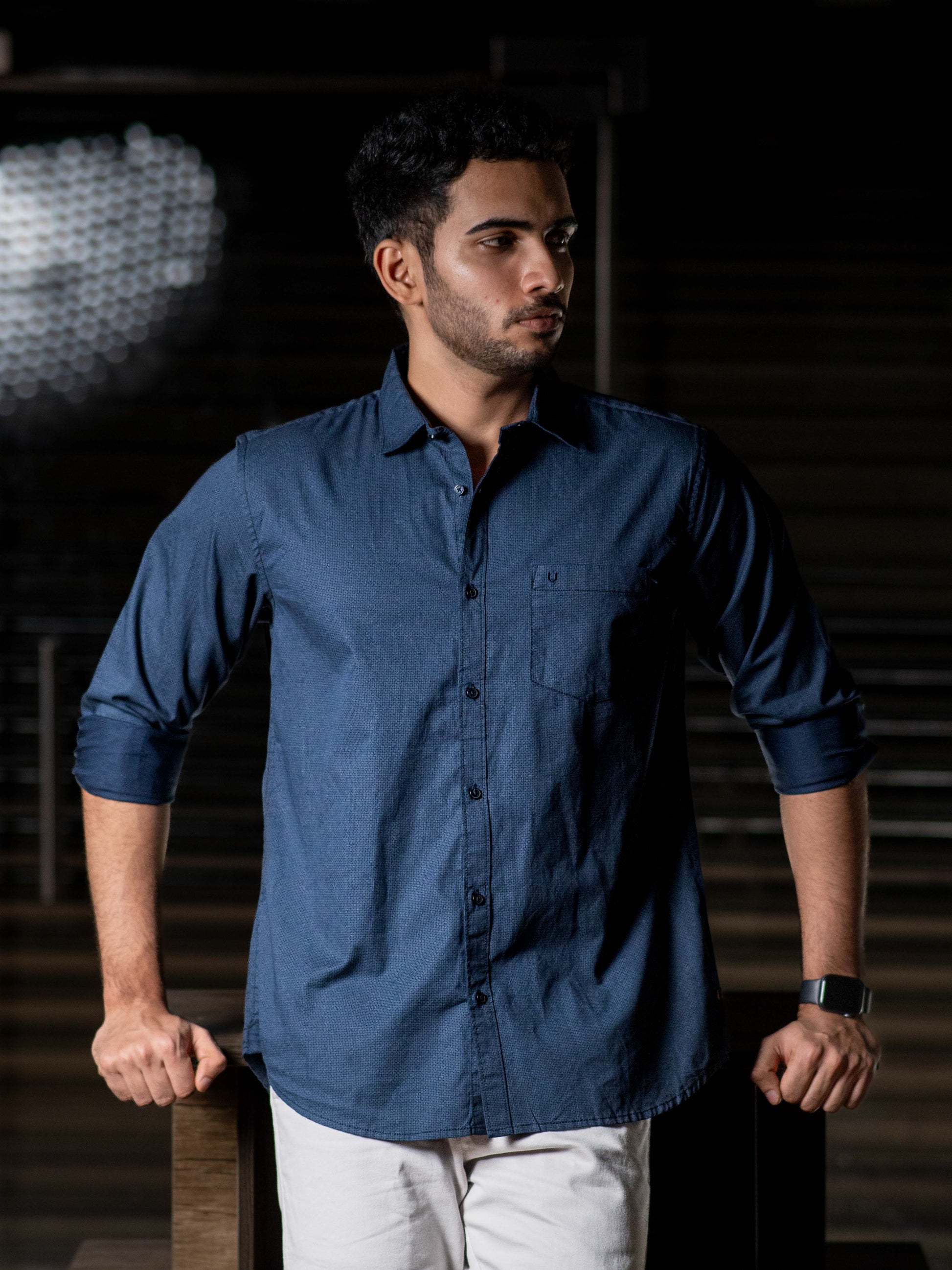 Elevate your wardrobe with our navy print shirt, where classic meets contemporary. The deep navy hue and intricate patterns make it perfect for both casual outings and formal occasions. Crafted for comfort and style, this shirt ensures you make a lasting impression wherever you go.