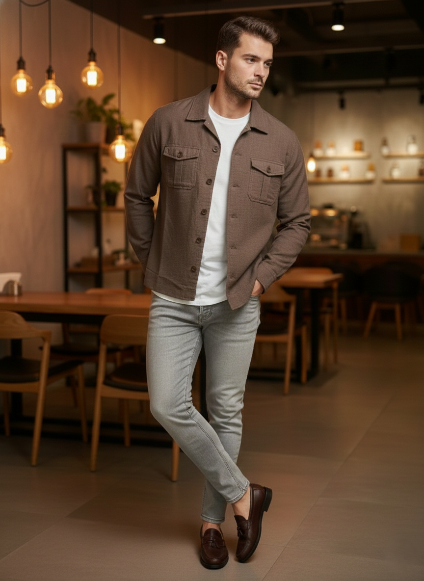 The light blue shade delivers a fresh, minimal aesthetic that pairs effortlessly with denim, chinos, or neutral trousers. Whether for casual outings, office-casual wear, or weekend styling, this shacket keeps your look sharp and relaxed.